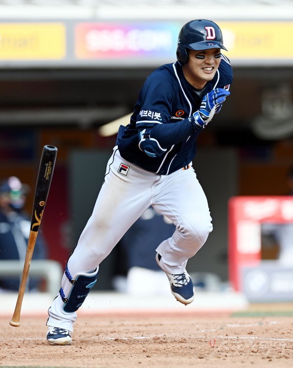 1일 인천 SSG 랜더스필드에서 ‘2022 신한은행 SOL KBO리그’ SSG 랜더스와 두산 베어스의 경기가 열렸다. 9회초 무사에서 두산 안권수가 안타를 날린 후 1루로 달리고 있다.