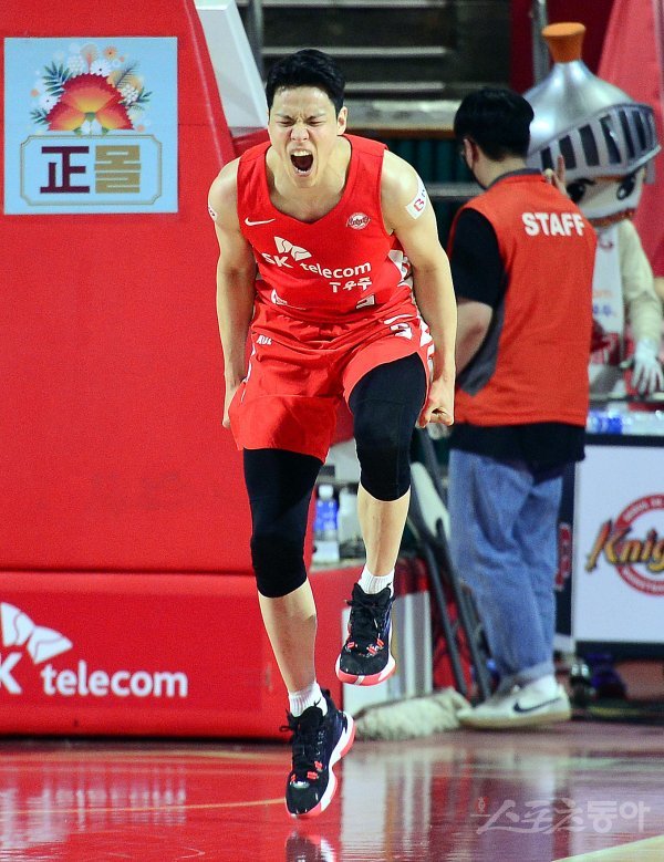 2일 서울 잠실학생체육관에서 열린 ‘2021-2022 정관장 프로농구’ 서울 SK와 안양 KGC의 챔피언결정전 경기에서 SK 김선형이 득점을 올린 후 환호하고 있다.