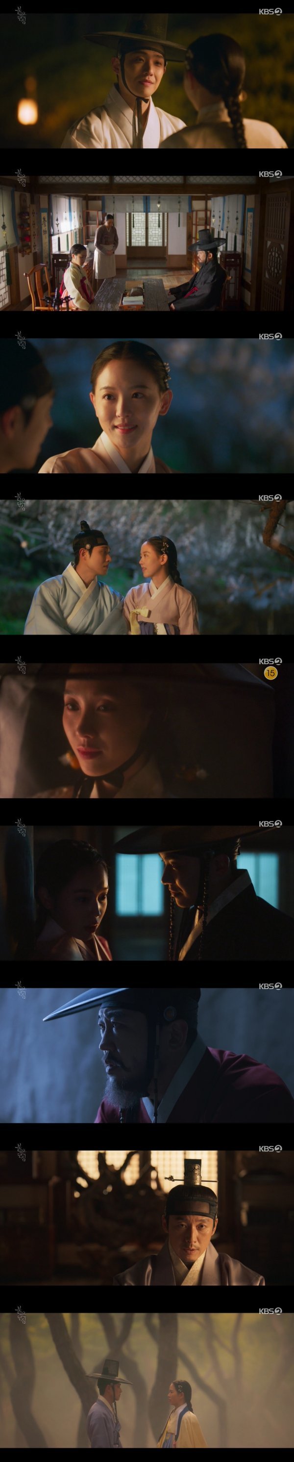 방송 말미, 이태는 김도령(고건한 분) 일행이 노리는 유정을 지키기 위해 경연장에서 급히 뛰어나왔고, 위험을 감수하고 그녀를 구하러 갔다. 이태는 자신을 보고 달려온 유정을 구하려다 팔에 화살이 스치기도. 다친 이태의 팔을 본 유정은 그에게 화를 내며 자신과 혼인해 달라고 했다. “선비님을 연모합니다”라는 그녀의 생각지도 못한 말에 이태는 “나에겐 혼인해야 할 여인이 있습니다”라고 답했고, 함께 할 수 없는 두 사람의 운명은 안방극장을 먹먹하게 만들었다. 더욱이 박계원이 이태가 만나는 여인이 있다는 사실을 알게 돼 한바탕 휘몰아칠 폭풍을 짐작하게 했다.