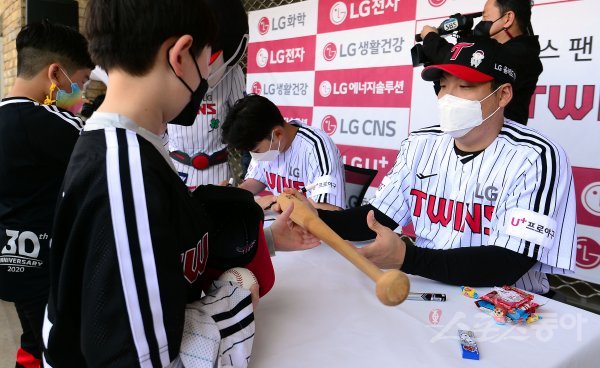 5일 서울 잠실야구장에서 ‘2022 신한은행 MY CAR KBO리그’ 두산 베어스와 LG 트윈스 경기가 열렸다. 어린이날을 맞아 LG 김현수가 팬사인회를 하고 있다.