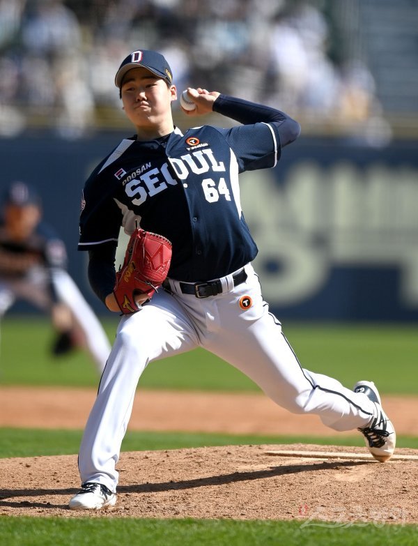 5일 서울 잠실야구장에서 ‘2022 신한은행 MY CAR KBO리그’ 두산 베어스와 LG 트윈스 경기가 열렸다. 선발 투수로 등판한 두산 최승용이 역투하고 있다.