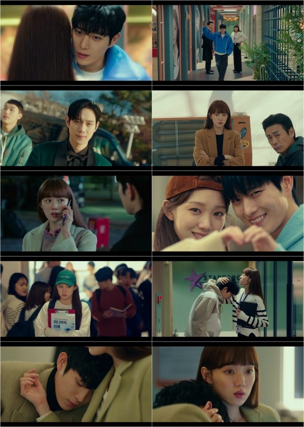 그런가 하면 극 말미에서는 ‘별들의 세계’ 촬영장에서 몇 날 며칠 밤을 새느라 녹초가 된 태성에게 서면 인터뷰 요청이 들어오는 모습이 그려졌다. 이에 태성은 “오한별이 나를 제일 잘 안다”며 한별에게 답변지 작성을 일임했다. 하지만 한별은 도저히 대신 답변할 수 없는 몇 가지 질문들 때문에 직접 현장에 찾아오고, 태성은 한별이 현장에 왔다는 사실에 즐거움을 감추지 못했다. 이어 대기실 안에서 한별과 태성의 Q&A 시간이 펼쳐졌고 ‘당신의 인생에서 가장 드라마틱한 순간은?’이라는 질문이 남았다. 한별은 금방이라도 잠들 것 같은 태성에게 고르기만 하라며 다급하게 보기를 건넸다. 제시한 보기는 ‘대학 졸업했을 때’, ‘영화 천만 됐을 때’, ‘처음 남우주연상 받았을 때’, ‘아프리카 갔을 때’. 이를 잠자코 듣던 태성은 피식 웃고는 “신기하네. 그때마다 다 네가 있네”라고 읊조려 한별을 놀라게 만들었다. 이어 마치 잠꼬대를 하듯 “계속 있어. 어디 가지 말고”라고 말하며 한별의 어깨에 쓰러져 잠이 들어버렸고, 심장이 철렁 내려앉은 한별의 표정과 함께 극이 종료돼 설렘을 폭발시켰다.