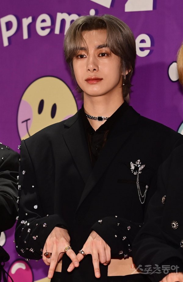 그룹 몬스타엑스 형원이 7일 서울 마포구 상암동 CJ ENM 센터에서 열린 ‘KCON 2022 프리미어 인 서울’ 포토월에서 포즈를 취하고 있다.