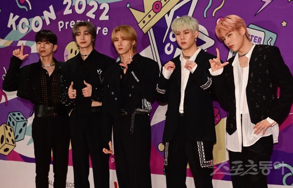 그룹 몬스타엑스가 7일 서울 마포구 상암동 CJ ENM 센터에서 열린 ‘KCON 2022 프리미어 인 서울’ 포토월에서 포즈를 취하고 있다.