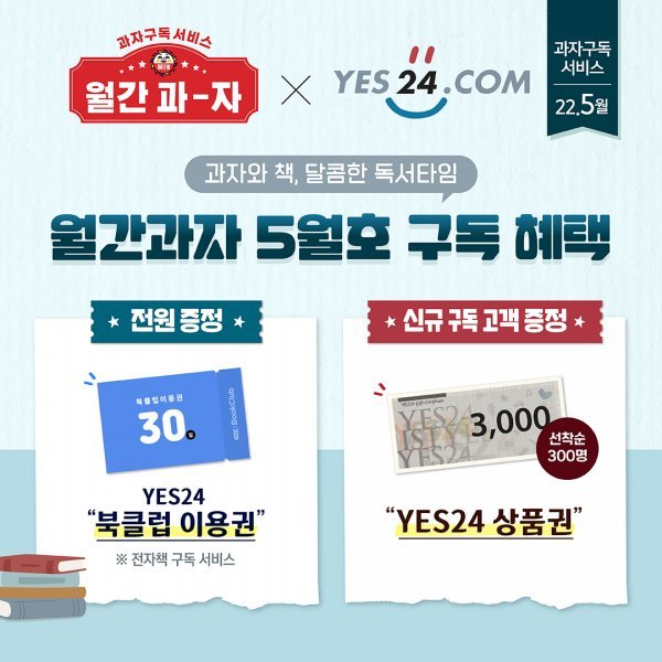 ‘월간과자X예스24’ 구독 서비스는 20일까지 롯데제과 공식 온라인몰 롯데스위트몰에서 신청 가능하다. 월간과자 5월호에 과자와 함께 북클럽 30일 이용권을 동봉한다. 또 5월 신규 구독자 300명에게 예스24의 3000원 상품권을 선착순 증정한다.