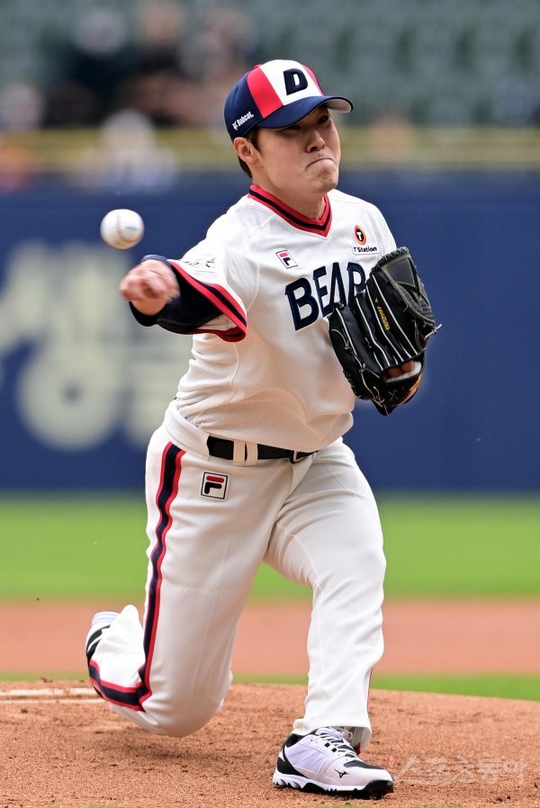 8일 서울 잠실야구장에서 열린 ‘2022 신한은행 SOL KBO리그’ 두산 베어스와 KT 위즈의 경기에서 선발 투수로 마운드에 오른 두산 최원준이 역투하고 있다.