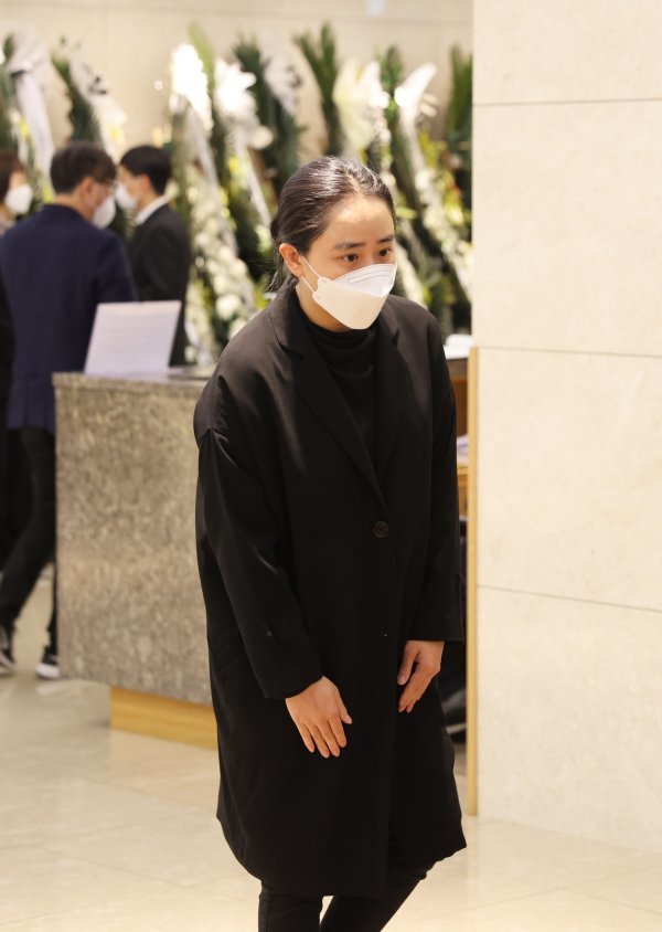 배우 문근영이 8일 삼성서울병원 장례식장에 마련된 故 강수연의 빈소를 찾아 조문하고 있다.