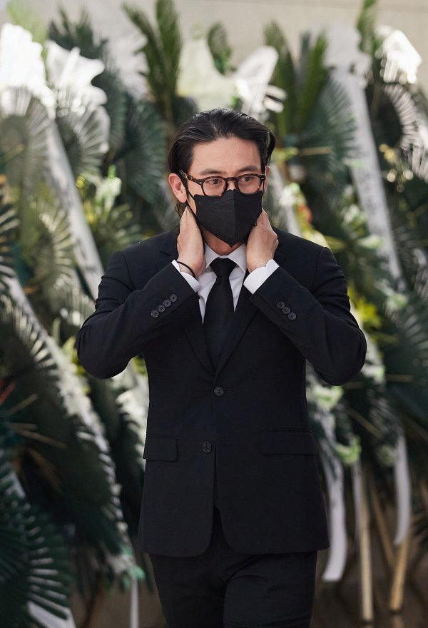 배우 고수가 8일 삼성서울병원 장례식장에 마련된 故 강수연의 빈소를 찾아 조문하고 있다.