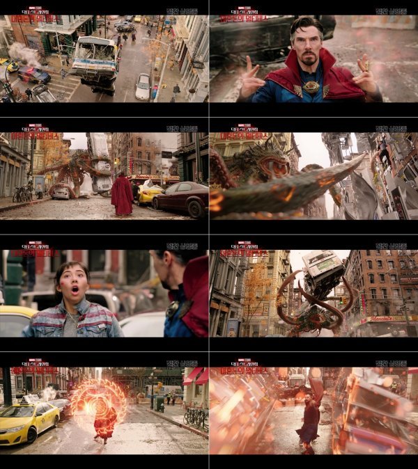 공개된 오프닝 액션 무삭제 영상에는 도심 한 가운데 나타난 미지의 생명체 ‘가르간토스’의 무자비한 공격이 시작되자 이를 막기 위해 슈퍼히어로로 변신한 ‘닥터 스트레인지’의 첫 등장이 담겨있다. 닥터 스트레인지의 더욱 화려해진 마법과 업그레이드된 시각효과, 한층 거대해진 스케일은 시작부터 관객들의 시선을 집중시키며 앞으로 펼쳐질 멀티버스의 다채로운 세계관에 기대를 이끌어낸다.