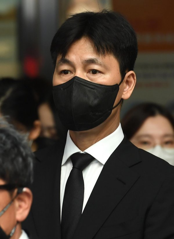 배우 고 강수연의 발인이 11일 서울 강남구 일원동 삼성서울병원 장례식장에서 엄수됐다. 배우 정우성이 발인을 지켜보고 있다.