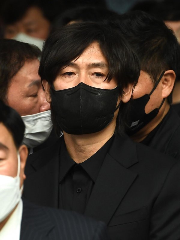 배우 고 강수연의 발인이 11일 서울 강남구 일원동 삼성서울병원 장례식장에서 엄수됐다. 배우 설경구가 발인을 지켜보고 있다.