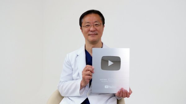 유튜브로부터 받은 실버 버튼을 들고 있는 아이디병원 박상훈 병원장