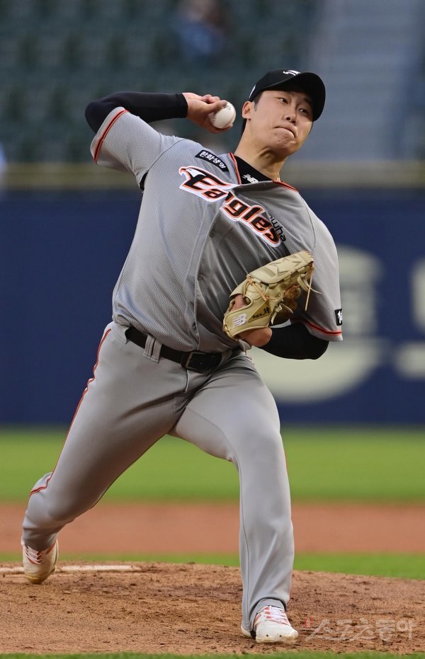 11일 서울 잠실야구장에서 열린 ‘2022 신한은행 SOL KBO리그’ LG 트윈스와 한화 이글스의 경기에서 선발 투수로 마운드에 오른 한화 남지민이 역투하고 있다.