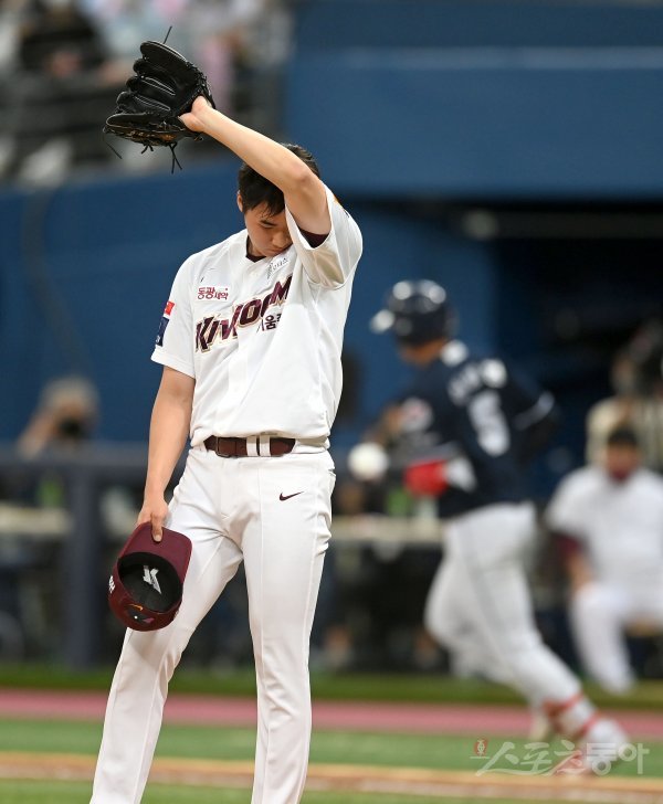 11일 서울 고척스카이돔에서 ‘2022 신한은행 MY CAR KBO리그’ 두산 베어스와 키움 히어로즈의 열렸다. 키움 장재영이 6회초 2사 2루 두산 신성현에게 좌월 투런 홈런을 허용하고 있다.