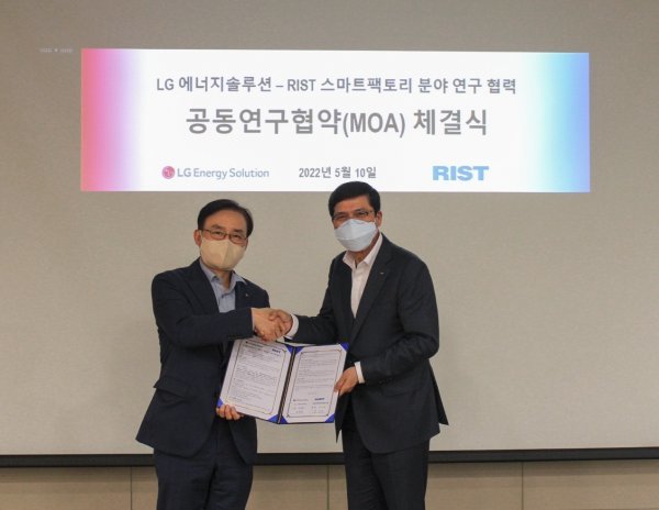 LG에너지솔루션과 포항산업과학연구원(RIST)이 스마트팩토리 분야 첨단기술 개발을 위해 공동 연구에 나선다. 10일 LG에너지솔루션과 RIST는 충북 흥덕구에 위치한 LG에너지솔루션 오창공장에서 ‘스마트팩토리 공동연구 협약서(MOA)를 체결했다. 양측은 이번 협약을 통해 현실 세계를 온라인 공간에 똑같이 구현하고 다양한 모의실험을 통해 발생 가능한 문제들을 사전에 예측하는 ‘디지털 트윈 기술’ 등 스마트팩토리 분야 첨단기술 연구에 적극 협력해 나갈 계획이다. 또한 라이다(Lidar) 기술을 이용한 실물 설비 3D 모델링 기술 등 RIST가 개발 및 보유하고 있는 스마트팩토리 관련 기술을 LG에너지솔루션에 우선 적용하기로 했다.