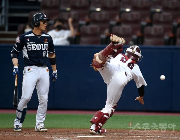 12일 서울 고척스카이돔에서 ‘2022 신한은행 MY CAR KBO리그’ 두산 베어스와 키움 히어로즈의 열렸다. 6회초 무사 1,2루 두산 안권수의 번트 타구를 키움 이지영이 잡으려 했으나 놓치고 있다.