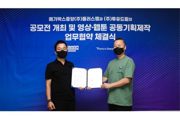 5월 12일 ㈜투유드림(대표 유택근)이 메가박스중앙㈜플러스엠(대표 홍정인)과 전략적 업무협약(MOU)을 체결하고 양사가 공동 주최하는 공모전 개최 및 웹툰·영상화 IP 공동 기획·개발에 나섰다고 발표했다.히어로, 코미디, 공포 등 장르를 가리지 않고 펼쳐지는 다채로운 즐거움