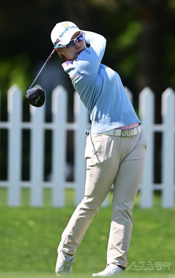 15일 경기도 용인시 수원컨트리클럽에서 열린 KLPGA투어 ‘2022 NH투자증권 레이디스 챔피언십’ 1번홀에서 티샷을 하고 있다. 용인 | 주현희 기자 teth1147@donga.com