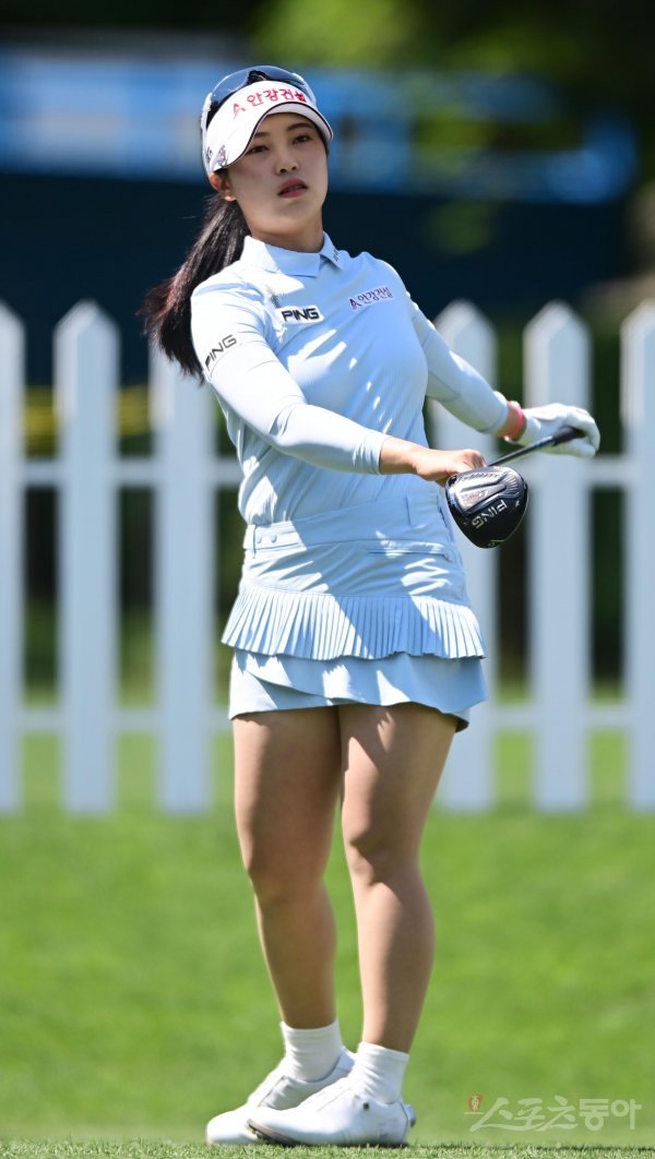 15일 경기도 용인시 수원컨트리클럽에서 열린 KLPGA투어 ‘2022 NH투자증권 레이디스 챔피언십’ 1번홀에서 전예성이 몸을 풀고 있다.