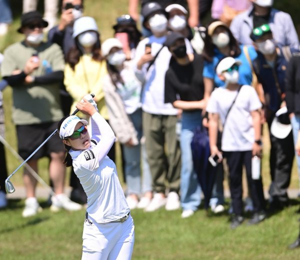 15일 경기도 용인시 수원컨트리클럽에서 열린 KLPGA투어 ‘2022 NH투자증권 레이디스 챔피언십’ 1번홀에서 박민지가 아이언샷을 하고 있다.