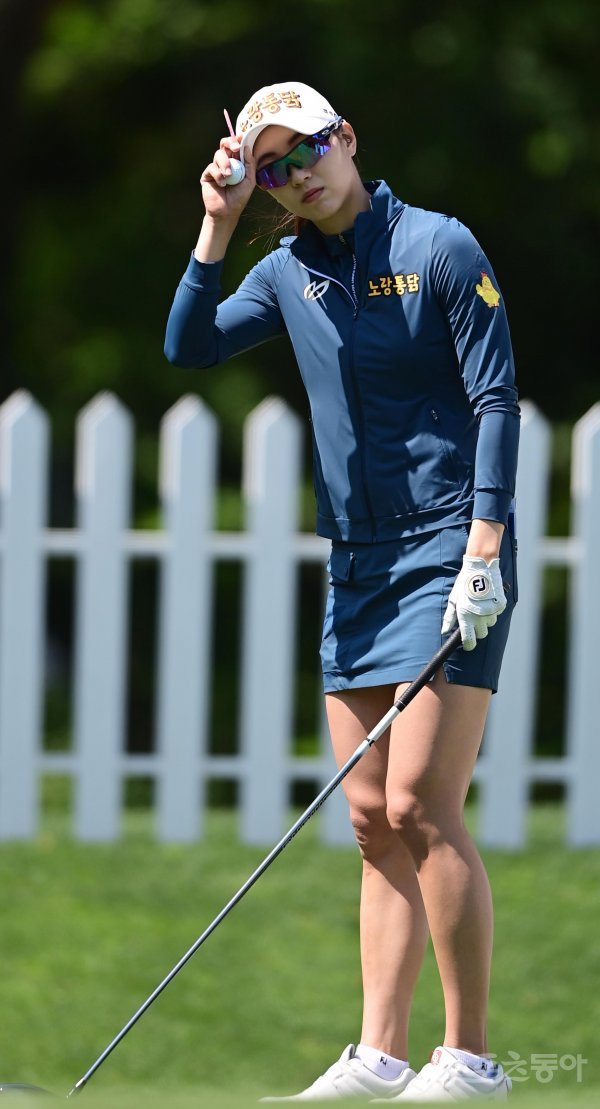 15일 경기도 용인시 수원컨트리클럽에서 열린 KLPGA투어 ‘2022 NH투자증권 레이디스 챔피언십’ 1번홀에서 강지선이 티샷에 앞서 갤러리들에게 인사하고 있다.