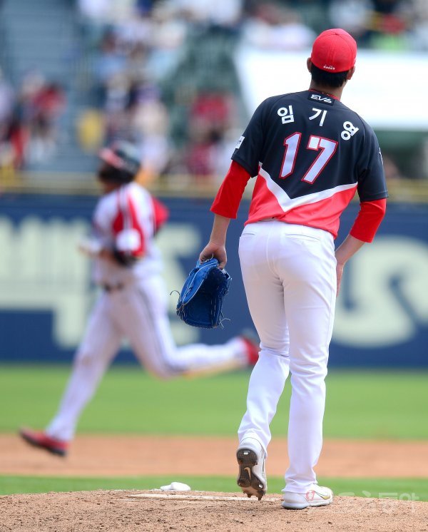 15일 서울 잠실야구장에서 ‘2022 신한은행 MY CAR KBO리그’ KIA 타이거즈와 LG 트윈스 경기가 열렸다. 4회말 1사 1,2루 KIA 임기영이 LG 이재원에게 좌월 스리런 홈런을 허용하고 있다.