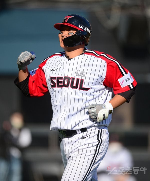15일 서울 잠실야구장에서 ‘2022 신한은행 MY CAR KBO리그’ KIA 타이거즈와 LG 트윈스 경기가 열렸다. 8회말 1사 LG 이재원이 좌월 솔로 홈런을 날리고 그라운드를 돌아 홈인해 기뻐하고 있다.