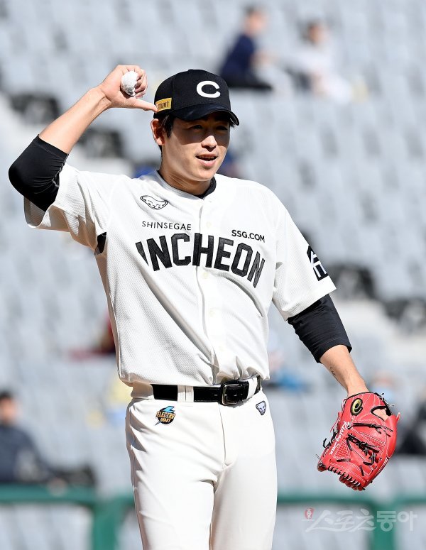 15일 인천 SSG 랜더스필드에서 ‘2022 신한은행 SOL KBO리그’ SSG 랜더스와 NC 다이노스의 경기가 열렸다. 6회초 1사 1루에서 SSG 선발 이태양이 병살로 이닝 종료 후 환호하고 있다.