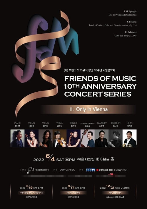 사단법인 프렌즈 오브 뮤직의 창단 10주년 기념음악회가 6월 4일 오후 8시 서울 서초동 예술의전당 IBK챔버홀에서 열린다.