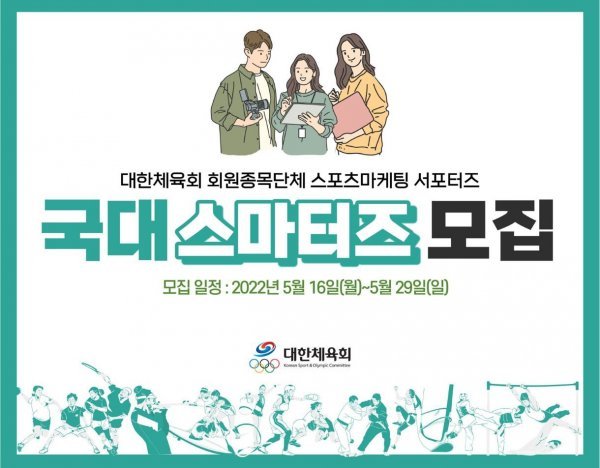대한체육회(회장 이기흥)는 다양한 스포츠 종목과 선수들을 홍보하고, 나아가 종목단체의 마케팅 활동을 지원하기 위한 서포터즈 프로그램 ‘2022 국대 스마터즈’를 모집한다.