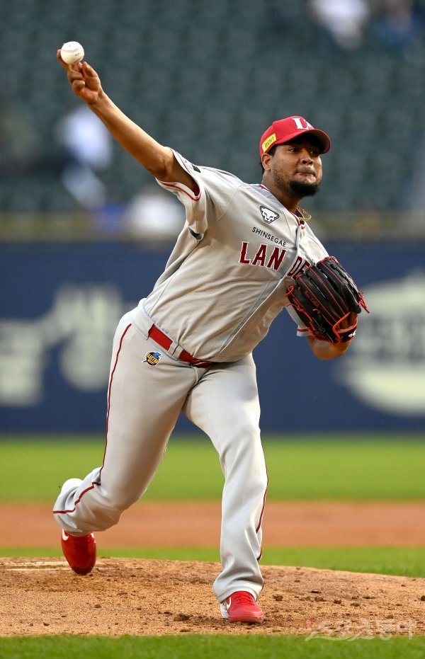 17일 서울 잠실야구장에서 ‘2022 신한은행 MY CAR KBO리그’ SSG 랜더스와 두산 베어스 경기가 열렸다. 선발 투수로 등판한 SSG 노바가 역투하고 있다.