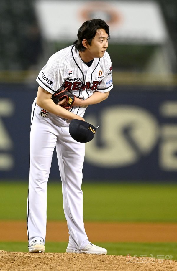 17일 서울 잠실야구장에서 ‘2022 신한은행 MY CAR KBO리그’ SSG 랜더스와 두산 베어스 경기가 열렸다. 교체 등판한 두산 박정수가 사구를 맞은 SSG 타자에게 사과하고 있다.