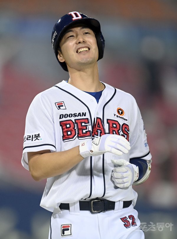 17일 서울 잠실야구장에서 ‘2022 신한은행 MY CAR KBO리그’ SSG 랜더스와 두산 베어스 경기가 열렸다. 연장 10회말 2사 2,3루 두산 김재호가 외야 뜬공으로 아웃된 후 아쉬워하고 있다.