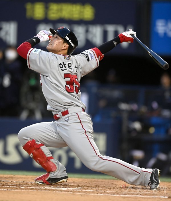 18일 서울 잠실야구장에서 ‘2022 신한은행 MY CAR KBO리그’ SSG 랜더스와 두산 베어스 경기가 열렸다. 4회초 무사 SSG 한유섬이 좌전 안타를 치고 있다.