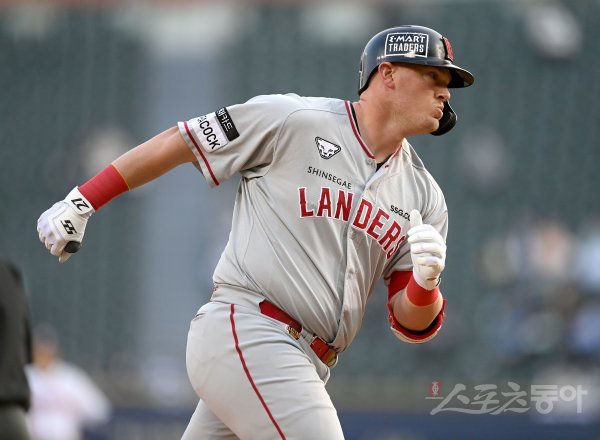 18일 서울 잠실야구장에서 ‘2022 신한은행 MY CAR KBO리그’ SSG 랜더스와 두산 베어스 경기가 열렸다. 2회초 1사 1루 SSG 크론이 좌월 투런 홈런을 날리고 그라운드를 돌며 기뻐하고 있다.