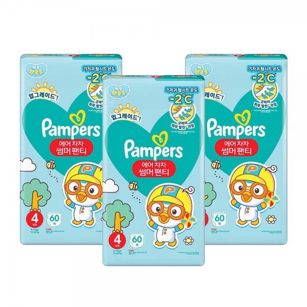 여름 시즌 아기 엉덩이 땀띠와 발진 걱정을 덜기 위해 개발한 여름 전용 팬티 기저귀다. 쿨케어 시스템을 활용해 기저귀 속 열기와 습기를 효과적으로 배출한다. 1초 흡수층을 적용해 축축함을 최소화하고, 7000개 이상의 바람구멍으로 구성된 매쉬 커버로 통기성을 더했다. 기저귀 전면에 뽀로로 캐릭터 프린트를 담았다.