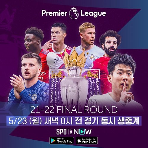 맨시티와 리버풀의 우승 경쟁 못지않게 주목받고 있는 손흥민의 득점왕 도전과 토트넘과 아스날의 챔스 진출권 쟁탈전, 강등권 경쟁 역시 같은 시간에 펼쳐진다. 우승팀부터 TOP4, 강등팀, 손흥민의 득점왕까지 모두 결정될 프리미어리그 최종 라운드 전 경기는 23일 새벽 0시 스포티비 나우(SPOTV NOW)에서 동시에 생중계된다.