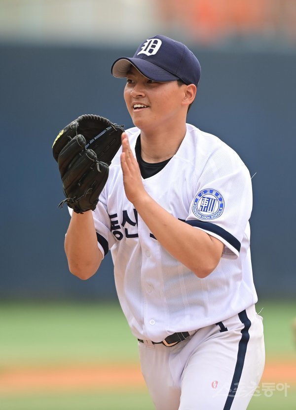 19일 서울 목동야구장에서 열린 ‘제76회 황금사자기 전국고교야구대회 겸 주말리그 왕중왕전’ 동산고와 예일메디텍고의 경기에서 6회말 수비를 마친 동산고 장희범이 손뼉을 치며 기뻐하고 있다.
