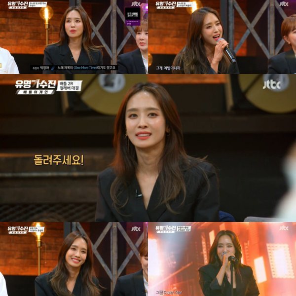 본격적인 배틀에 앞서 박정아는 쥬얼리의 히트곡인 ‘Again’, ‘니가 참 좋아’를 즉석에서 열창했다. 또한 상대 팀 유명가수로 출연한 더 블루 김민종의 히트곡 무대에 “어쩔 수 없는 책받침 세대다”라고 호응했다.