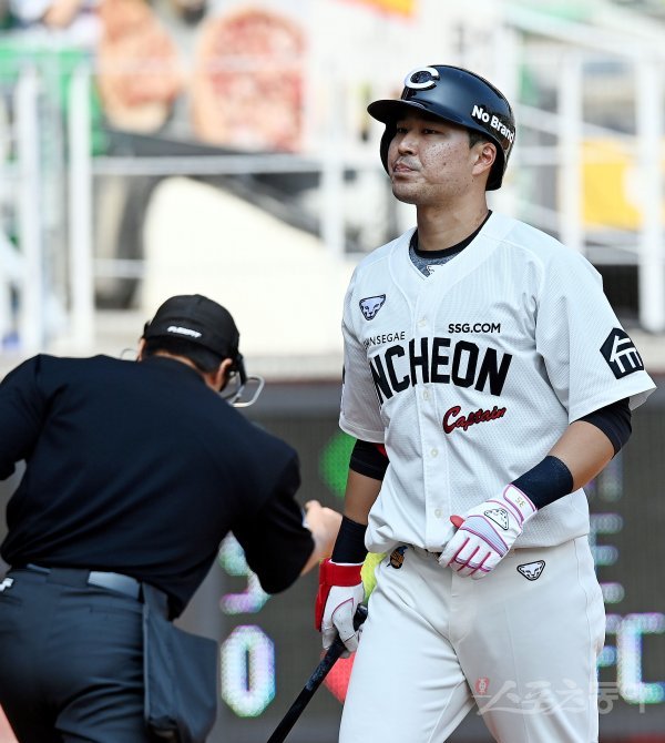 22일 인천 SSG 랜더스필드에서 ‘2022 신한은행 SOL KBO리그’ SSG 랜더스와 LG 트윈스의 경기가 열렸다. 7회말 1사 1루에서 SSG 대타 한유섬이 삼진 아웃으로 물러나고 있다.