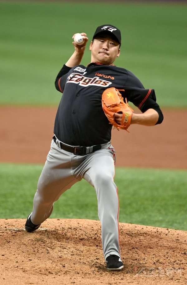 22일 서울 고척스카이돔에서 ‘2022 신한은행 MY CAR KBO리그’ 한화 이글스와 키움 히어로즈 경기가 열렸다. 선발 투수로 등판한 한화 이민우가 역투하고 있다.