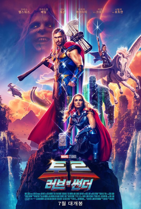 ‘토르: 러브 앤 썬더’는 전작 ‘토르: 라그나로크’를 통해 독보적 개성의 연출력을 선보이며 시리즈 최고 흥행 성적을 기록한 타이카 와이티티 감독이 다시 연출을 맡아 화제다. 천둥의 신 ‘토르’ 크리스 헴스워스의 컴백과 새로운 히어로 ‘마이티 토르’ 로 변신한 나탈리 포트만, ‘고르’ 역의 크리스찬 베일, ‘제우스’ 역의 러셀 크로우 등 할리우드 대표 스타들의 역대급 라인업은 시리즈 사상 최고의 스케일과 재미를 선사할 이번 작품에 대한 기대를 높인다.