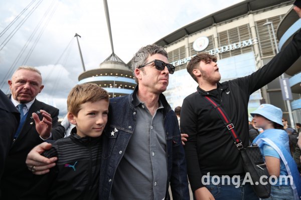노엘 갤러거(선글라스 착용)가 맨시티 우승 후 경기장을 빠져나오고 있다. 사진=게티이미지코리아.