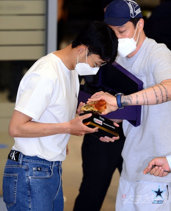 2021-2022 잉글랜드 프로축구 프리미어리그(EPL) 득점왕에 오른 손흥민이 24일 인천국제공항을 통해 귀국해 골든부트를 준비하고 있다.