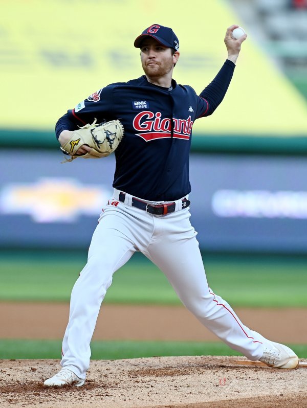 24일 인천 SSG 랜더스필드에서 ‘2022 신한은행 SOL KBO리그’ SSG 랜더스와 롯데 자이언츠의 경기가 열렸다. 롯데 선발투수 반즈가 힘차게 볼을 던지고 있다.