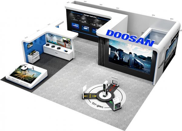 두산퓨얼셀은 수소, 전기, 열을 동시에 생산할 수 있는 트라이젠(Tri-gen)을 전시한다. 이 제품은 최근 경기도 화성시 한국가스공사 부지에 실증을 위한 준비를 마쳤으며, 올해 실증을 거쳐 2022년 내 본격 상용화할 계획이다. ㈜두산 퓨얼셀파워BU는 건물·주택용 수소연료전지를, DMI는 내풍성과 내구성이 높은 DS30W 제품과 함께 안티드론과 가스배관 솔루션을 공개한다.