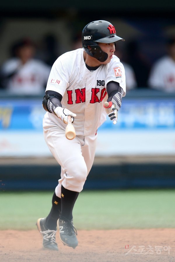 25일 서울 목동야구장에서 열린 ‘제76회 황금사자기 전국고교야구대회 겸 주말리그 왕중왕전’ 북일고와 인천고 16강전 경기 4회말 1사 1,2루 인천고 김신이 우전 안타를 치고 있다.