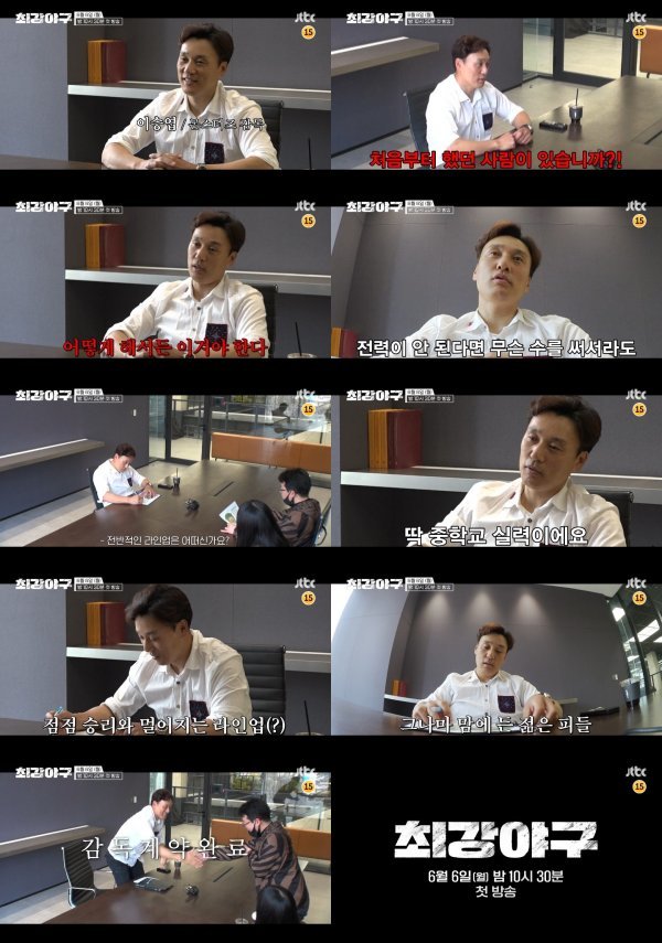 하지만 곧이어 ‘최강 몬스터즈’ 선수 명단을 확인한 이승엽은 걱정을 드러냈다. 그는 “지금 멤버로는 딱 중학교 실력”이라며 선수들을 냉철하게 분석했지만, ‘젊은 피’ 이홍구, 정의윤, 한경빈에게는 기대감을 표했다.
