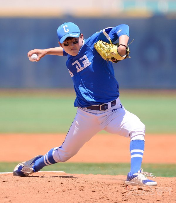 26일 서울 목동야구장에서 열린 ‘제76회 황금사자기 전국고교야구대회 겸 주말리그 왕중왕전’ 청원고와 마산고의 8강전 경기에 선발 등판한 청원고 김도연이 역투하고 있다.