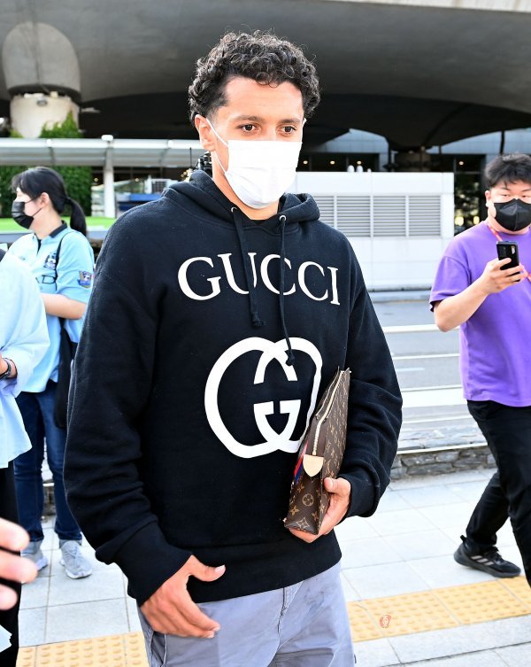 한국축구대표팀과 A매치 평가전을 치르는 브라질축구대표팀이 26일 인천국제공항을 통해 입국했다. 브라질축구대표팀 마르퀴뇨스가 입국장을 빠져나가고 있다.